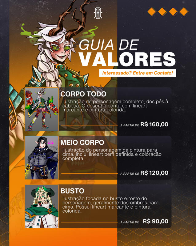 Sou um artista digital com formação em Game Design apaixonado por fantasia medieval. Transformo descrições e histórias em imagens vívidas, com personalidade e muitos detalhes, sempre buscando dar um toque épico aos meus personagens.Cada obra conta a história única de um personagem, seu passado, seus conflitos, seus poderes e símbolos. Não é só uma imagem bonita, é uma porta de entrada para o mundo imaginado!
